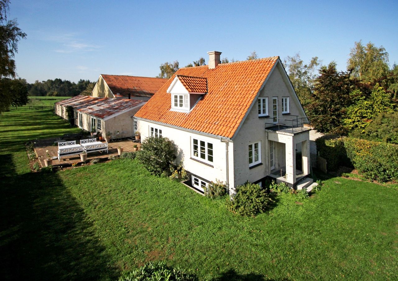 Hovedhuset incl. mellembygning har et boligareal på 174 kvm og er indrettet med skønt stort landkøkken